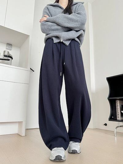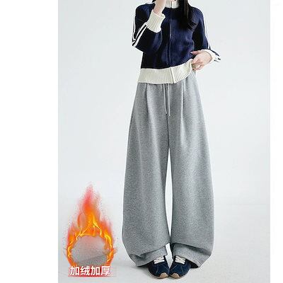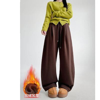 2025 秋冬 裏起毛パンツ 防寒 デザイン感 ゆったり ストレートパンツ スウェットパンツ ワイドパンツ レディースファッション