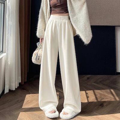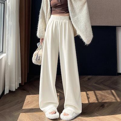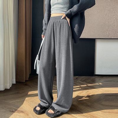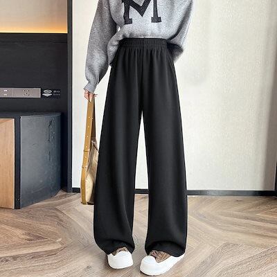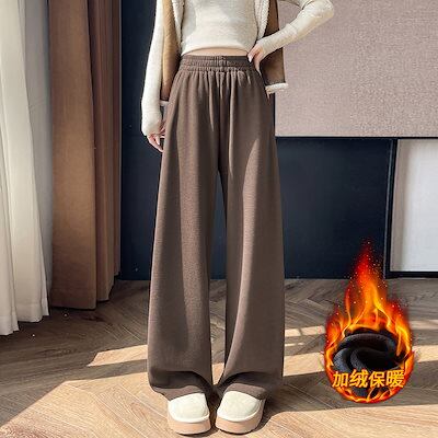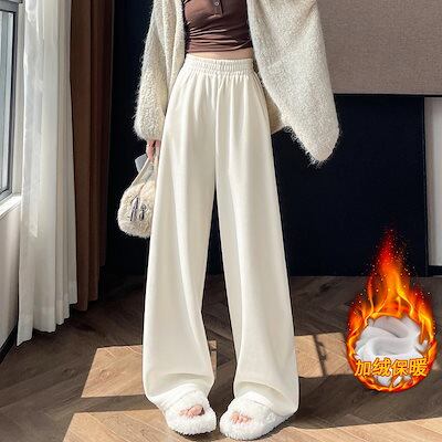 2025 秋冬 裏起毛パンツ 厚手 女性用 低身長 ゆったり ハイウエスト カジュアル ストレートパンツ ワイドパンツ レディースファッション