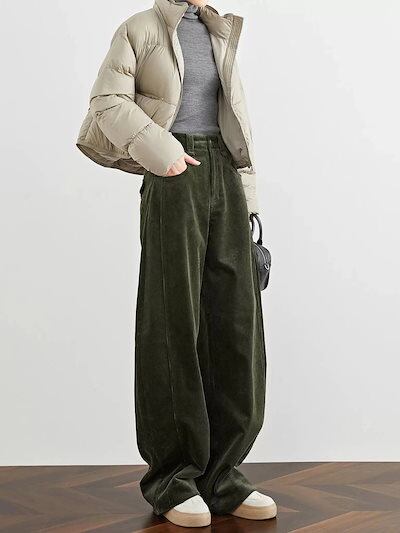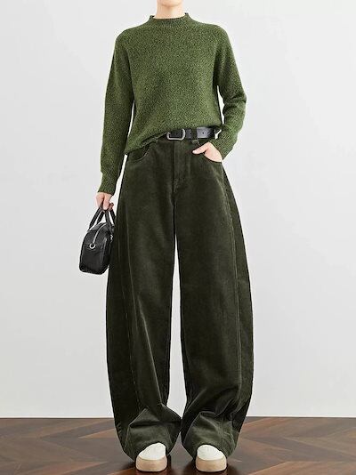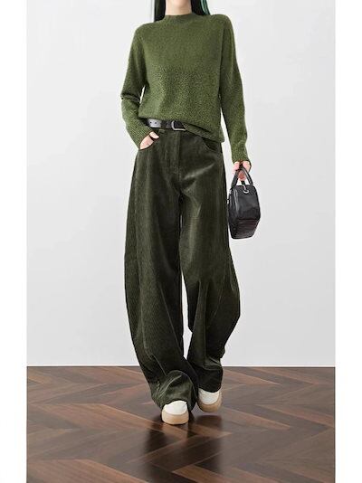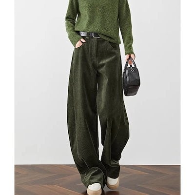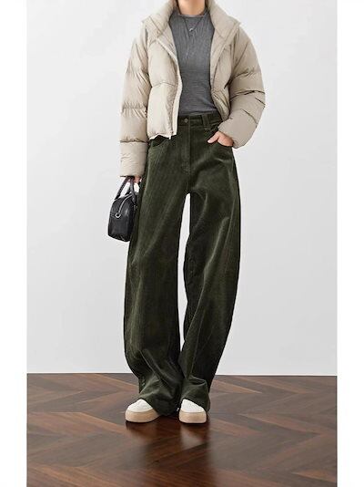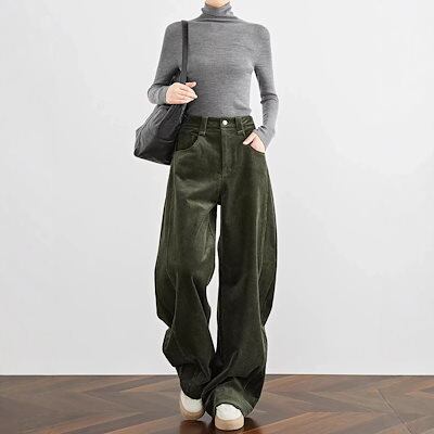 2026 春 裏起毛コーデュロイパンツ レトロ ロングパンツ カジュアル ワイドパンツ レディース
