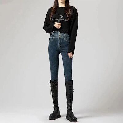 ストレッチパンツ 秋冬 ジーンズ 美脚見せ レディース デニムパンツ スリム ハイウエスト ロング丈 ボトムス 細身 カジュアル か出荷が早い