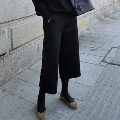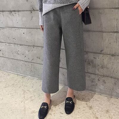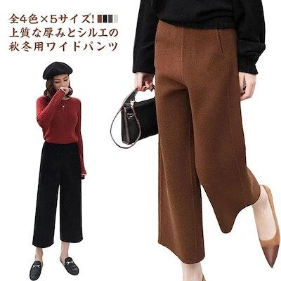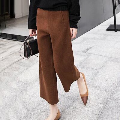 メルトンパンツ 秋冬 ワイドパンツ ガウチョパンツ レディース メルトン パンツ ワイド ボトムス ストレート 体型カバー 9分丈 7出荷が早い