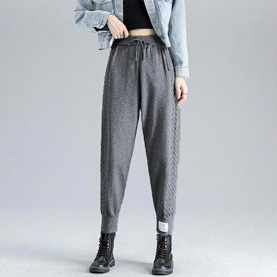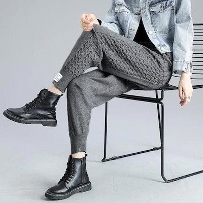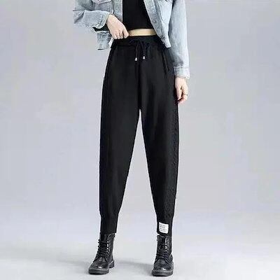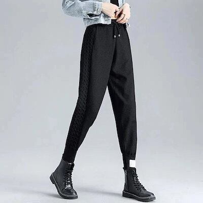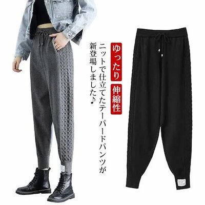 テーパードパンツ ニット レディース サイド ケーブル編み 切り替え ニット生地 イージーパンツ ゆったり 太め ストレンチ 伸縮性 春 秋 ボトムス バルーンパンツ 通勤 通学 オフィス カジュアル