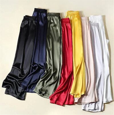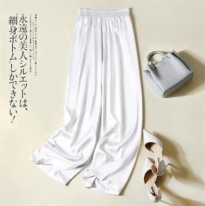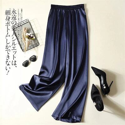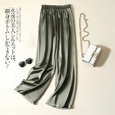 芸能人も好きな服を着ます サテン ワイドレッグパンツ レディース サマー シルクリアル ハイウエスト