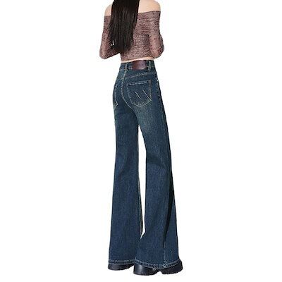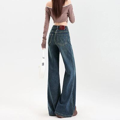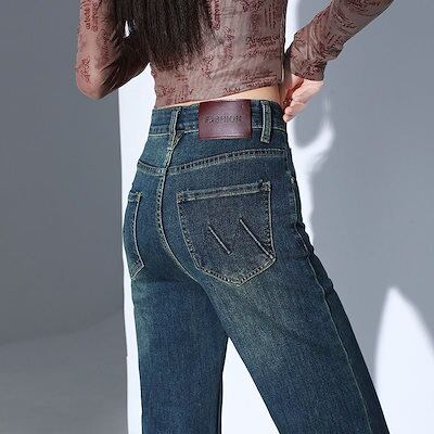 裏起毛パンツ ハイウエスト ストレッチ 微フレア ジーンズ 女性用 2026年新作 シルエット補正 脚に張り付かない スリム効果 裾引き ホースシューカット ジーンズ