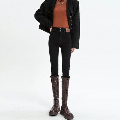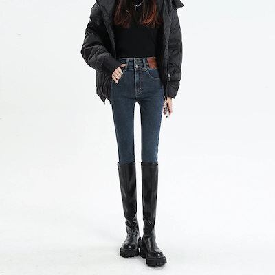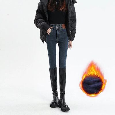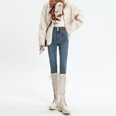 裏起毛パンツ スキニー スキニー ジーンズ 女性 春・秋 2026 新作 ハイウエスト スリム効果 フィット ブーツカット 9分丈 ペンシル レギンス パンツ