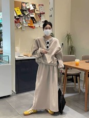 脂肪大きいサイズ 2-300 ポンド怠惰なスタイルカジュアルスーツ女性の秋と冬のラウンドネックスウェットシャツ巾着スカート 2 点セット 大きめサイズ オータム 秋物 ウィンター 冬物 Oネック アウター ジャケット chihi0211c72421327832 | chihikaga