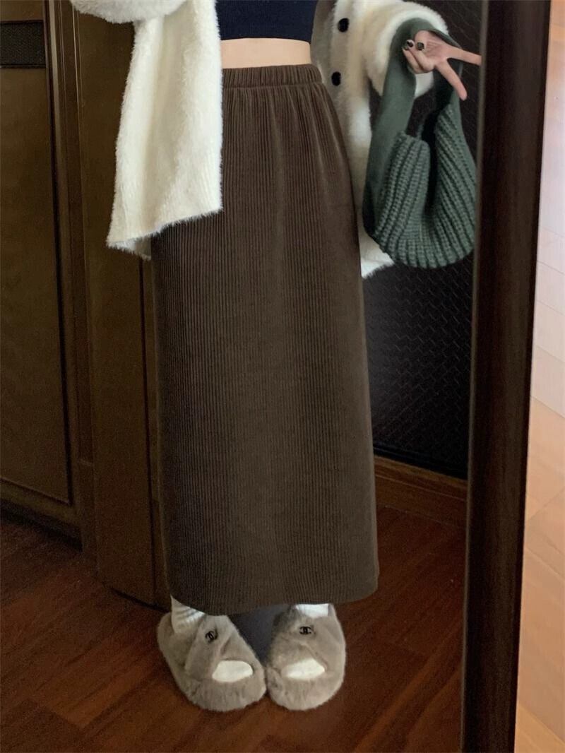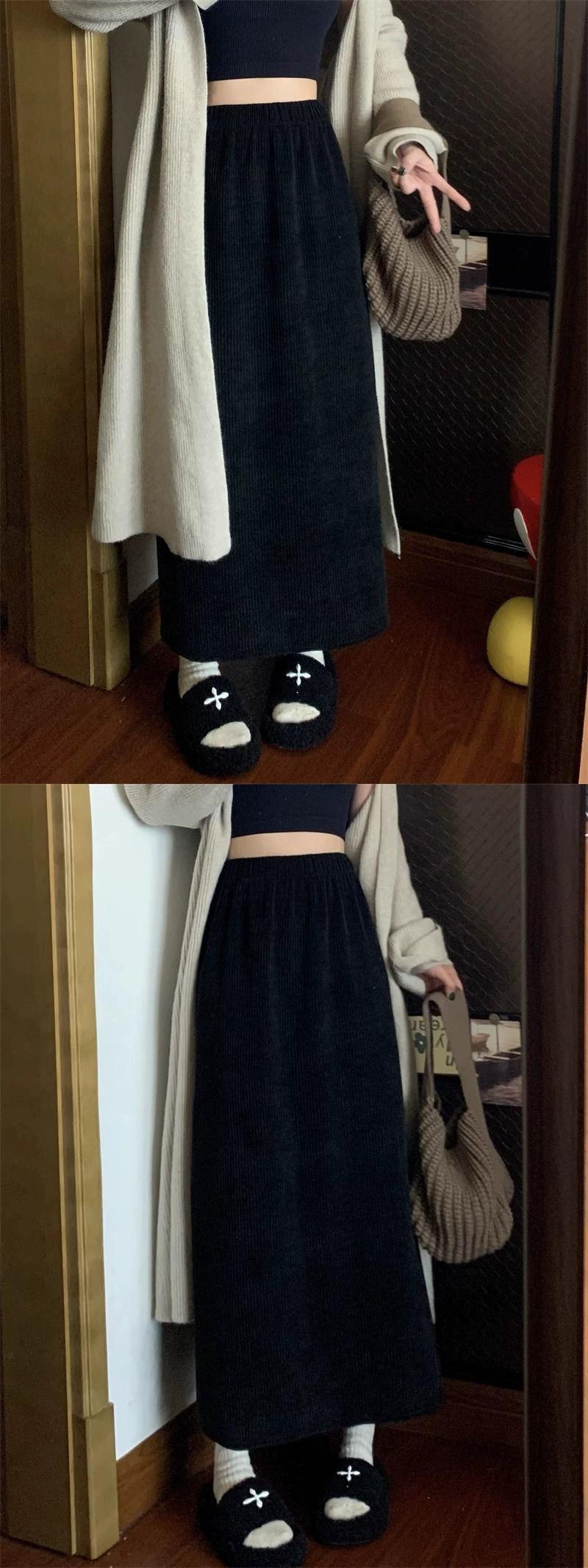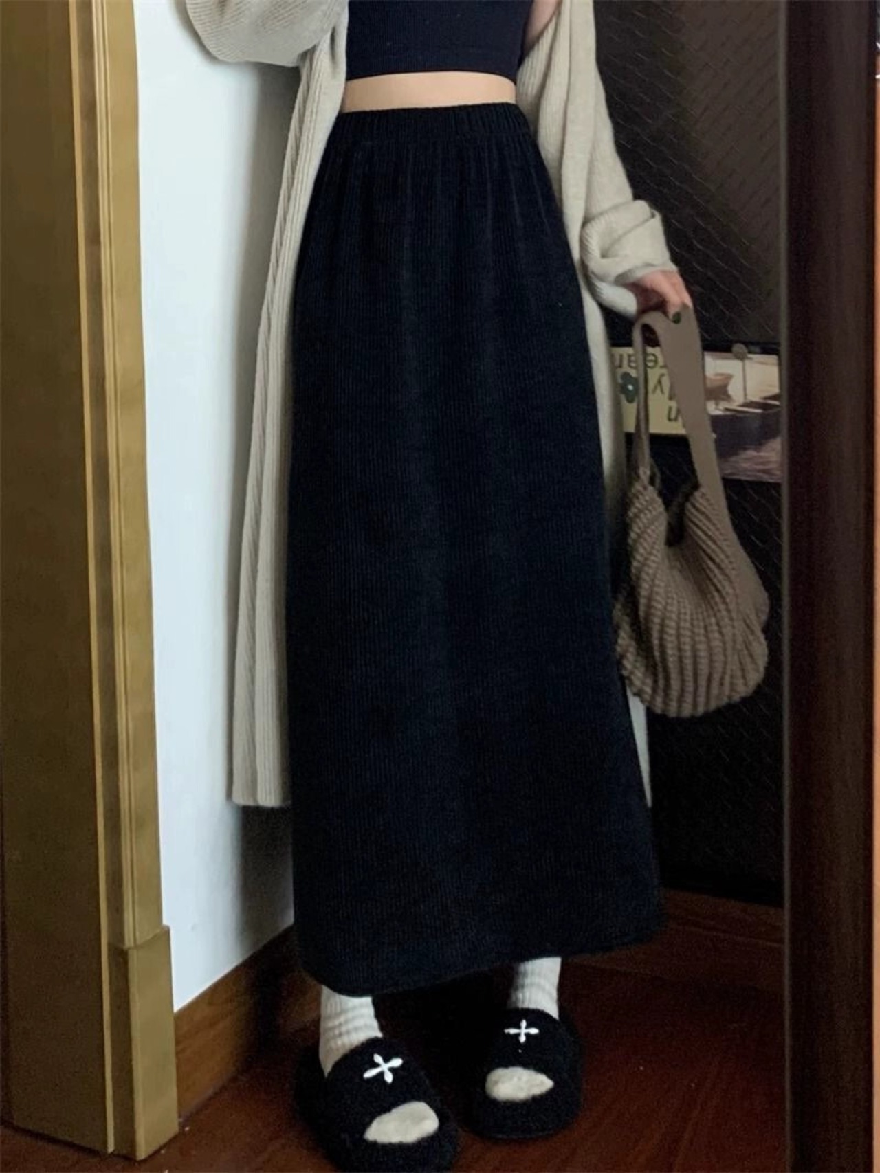 特大サイズ 300 ポンド弾性ウエストシェニールスカート女性の秋と冬の脂肪、ルーズでスリムな A ラインロングスカート エラスティック 伸縮 大きめサイズ オータム 秋物 ウィンター 冬物 Aライン アウター ジャケット chihi0211c84224361187 | chihikaga