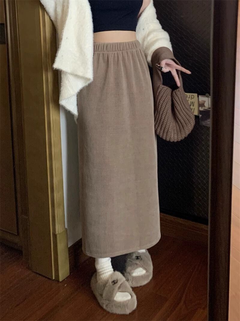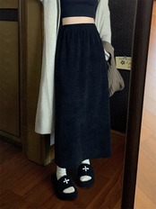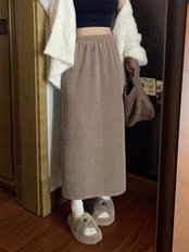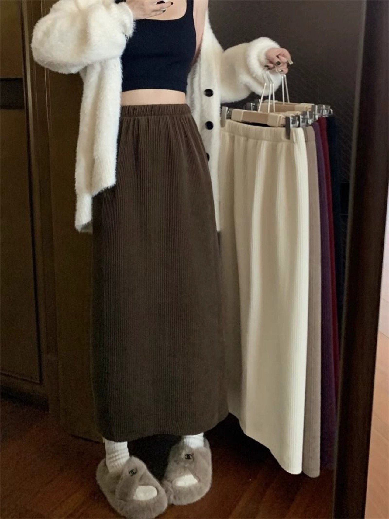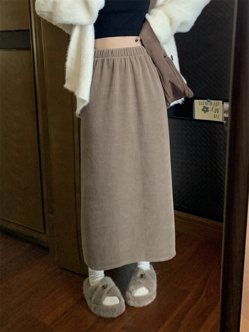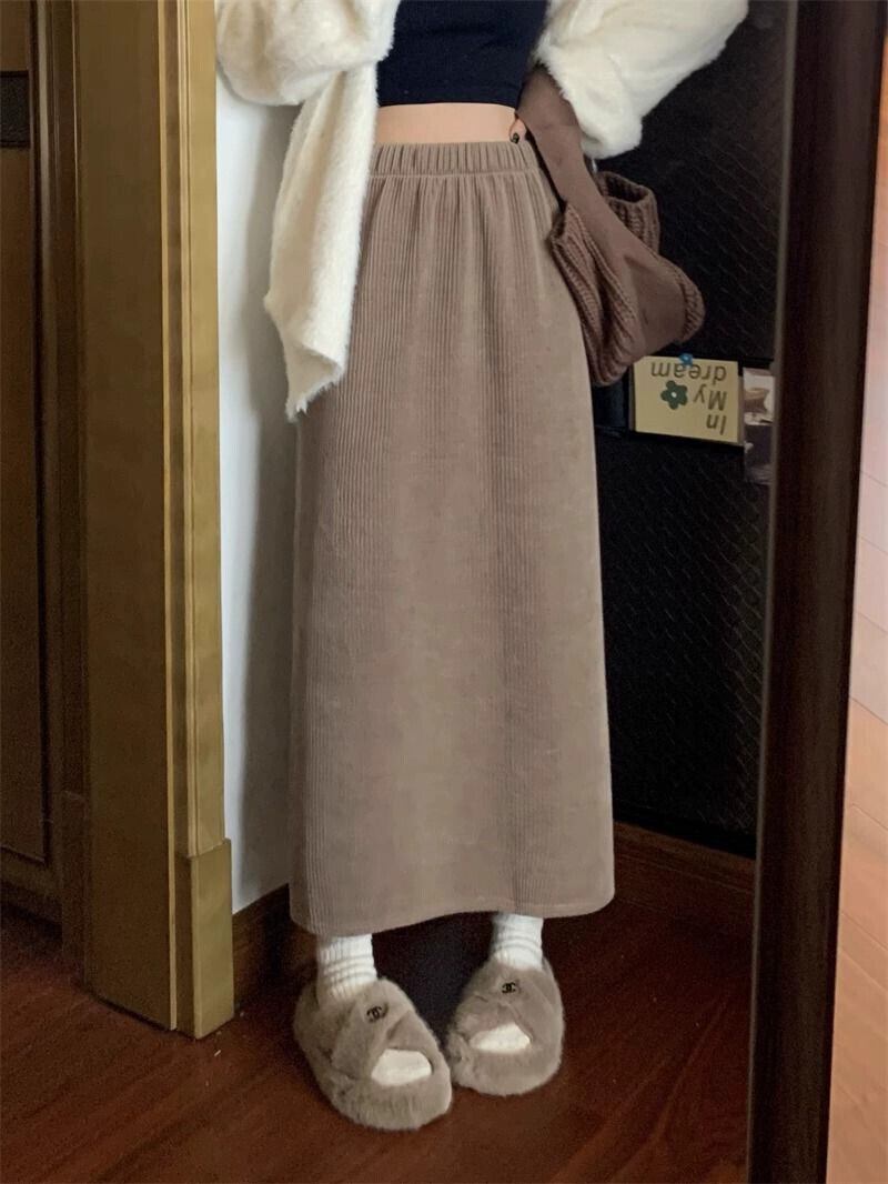 特大サイズ 300 ポンド弾性ウエストシェニールスカート女性の秋と冬の脂肪、ルーズでスリムな A ラインロングスカート エラスティック 伸縮 大きめサイズ オータム 秋物 ウィンター 冬物 Aライン アウター ジャケット chihi0211c84224361187 | chihikaga