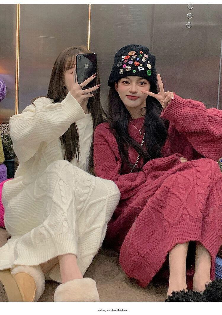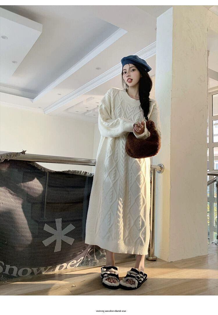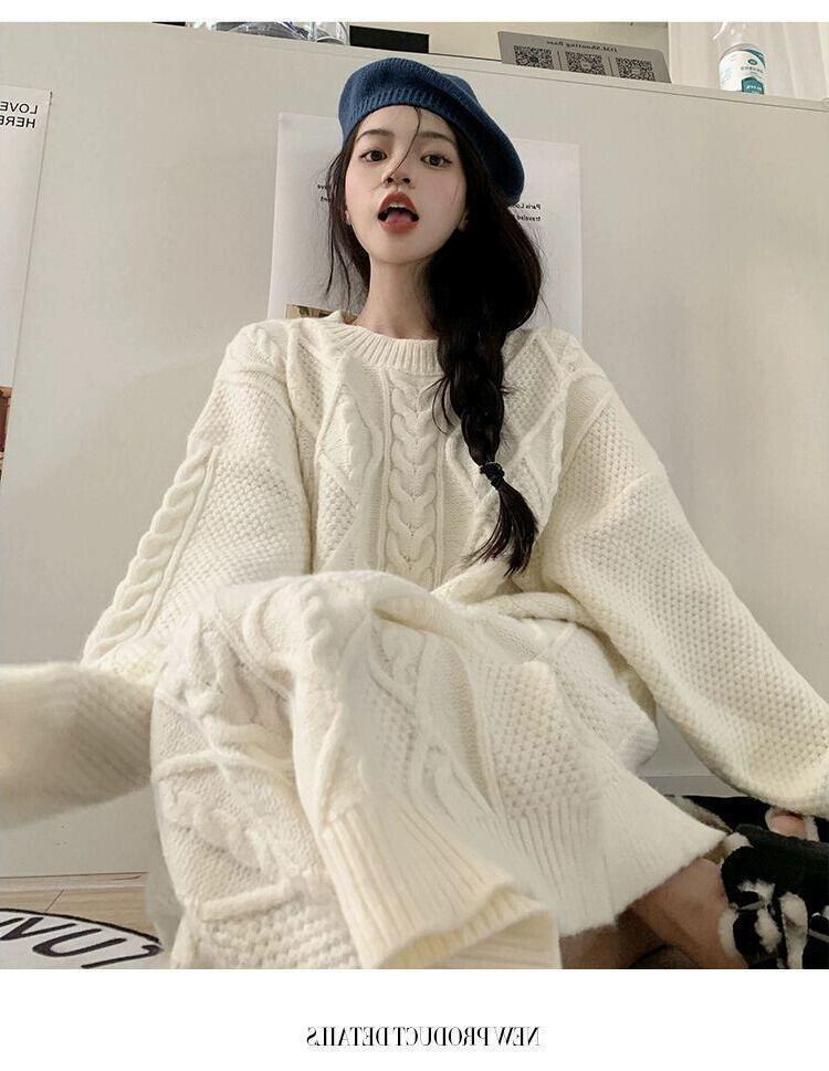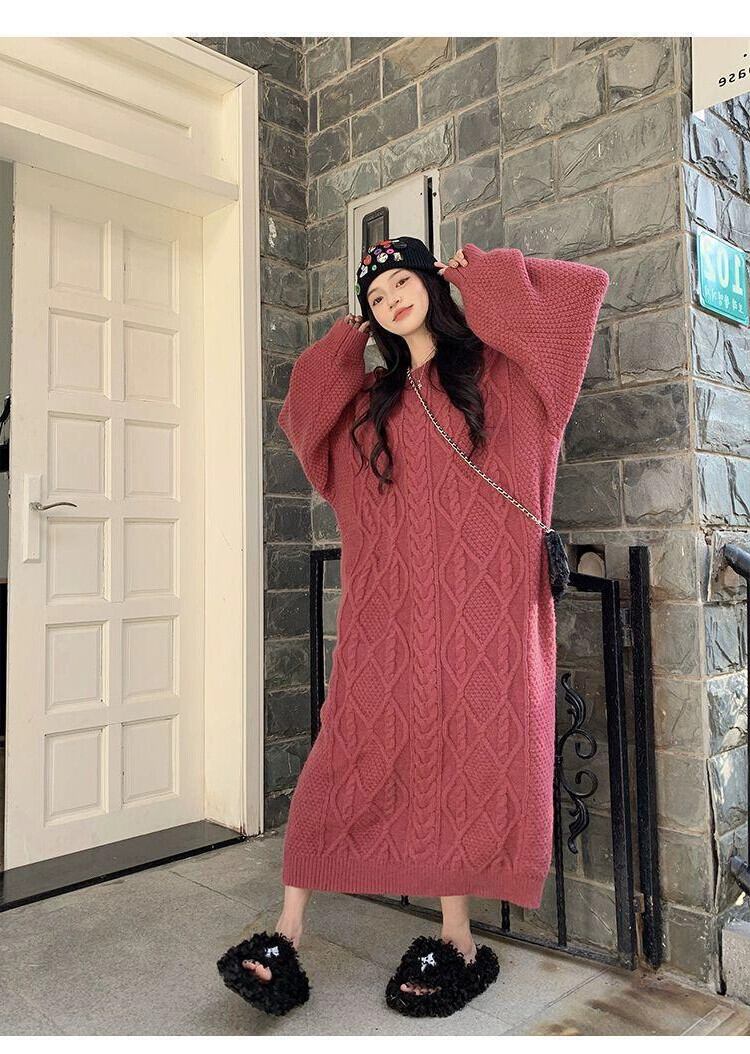 特大サイズ300ポンドのツイストセーター、秋と冬に太った女性の膝丈のドレス、怠惰なスタイルの厚いニットスカート ロング 大きめサイズ オータム 秋物 ウィンター 冬物 アウター ジャケット chihi0211c25681964784 | chihikaga