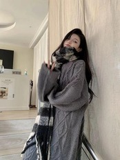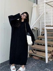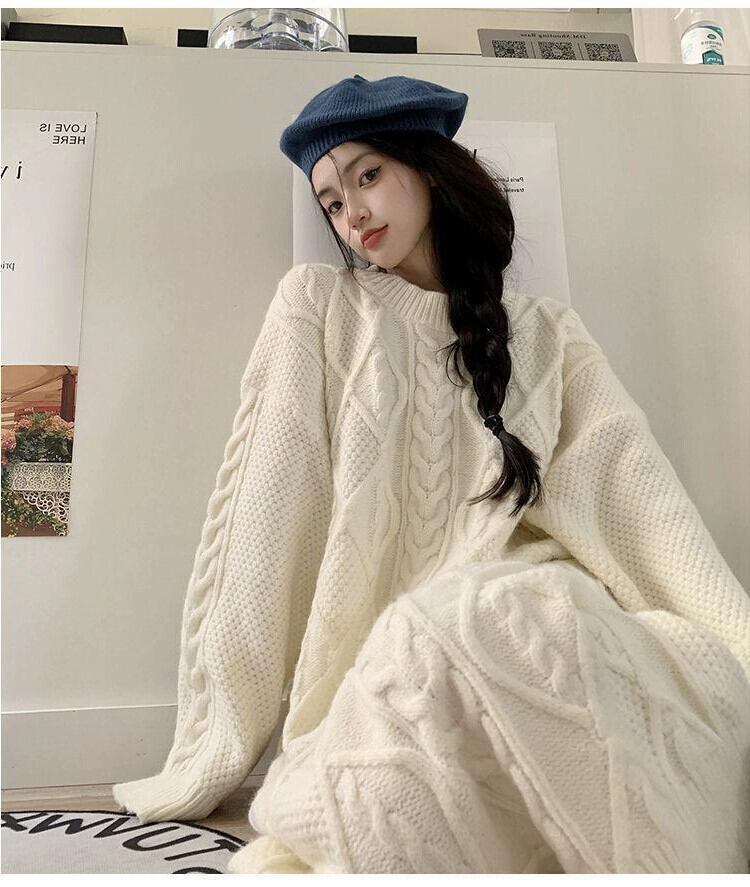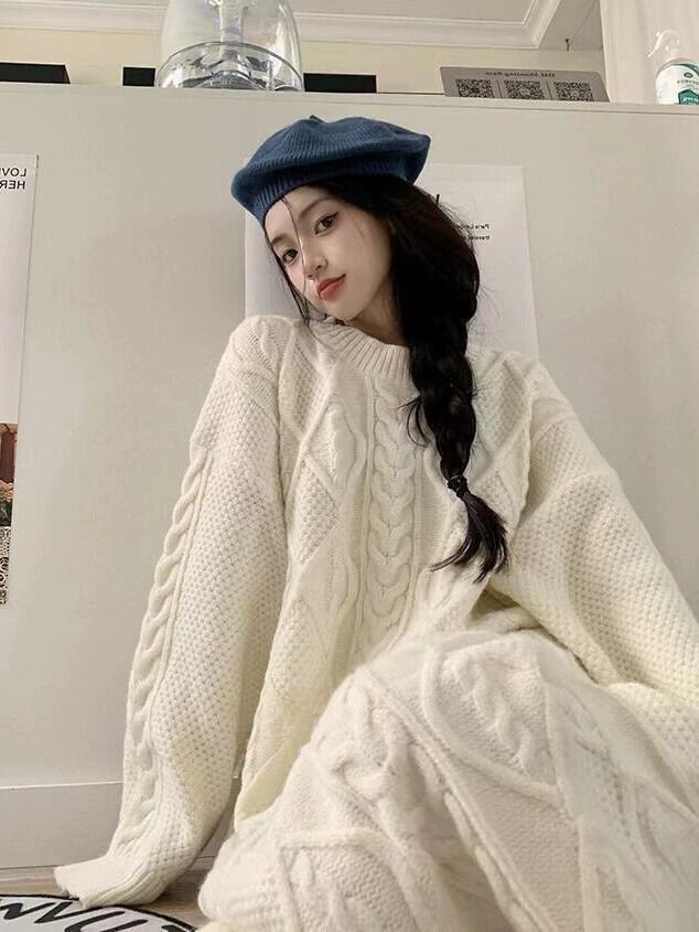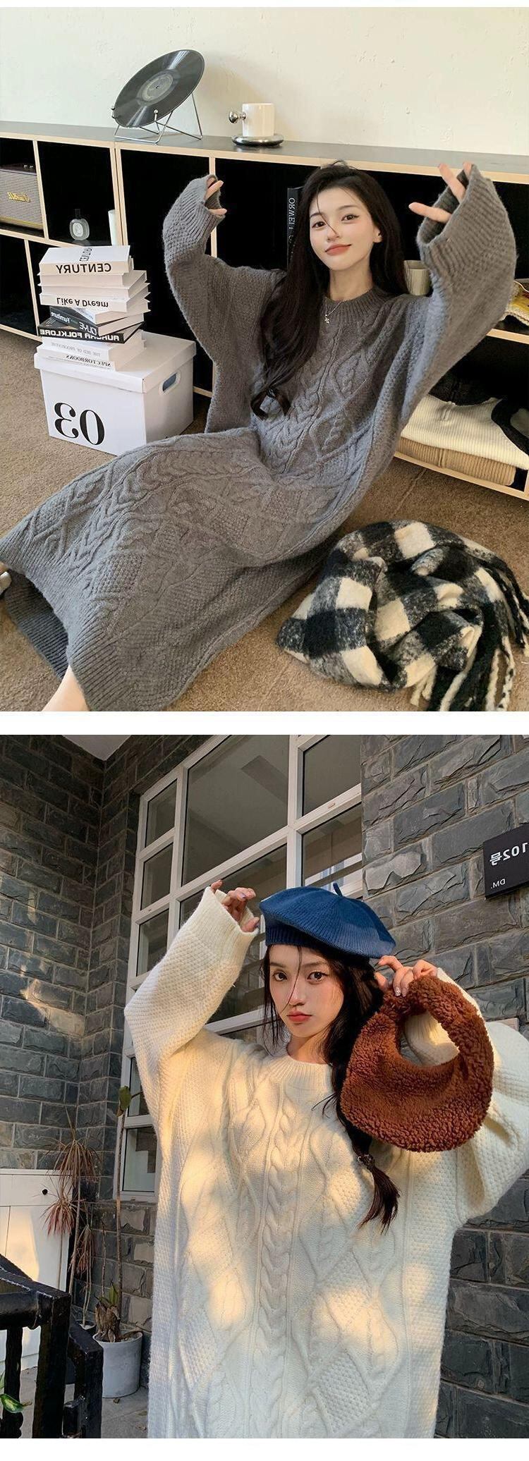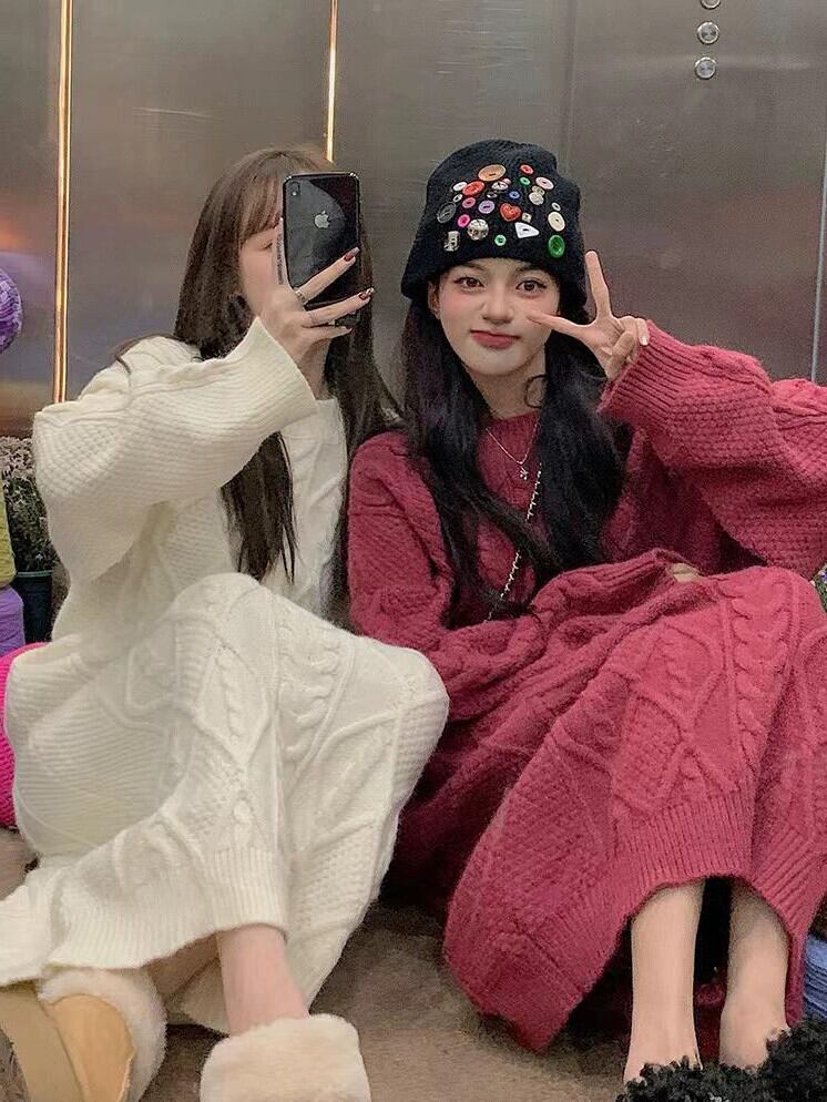 特大サイズ300ポンドのツイストセーター、秋と冬に太った女性の膝丈のドレス、怠惰なスタイルの厚いニットスカート ロング 大きめサイズ オータム 秋物 ウィンター 冬物 アウター ジャケット chihi0211c25681964784 | chihikaga