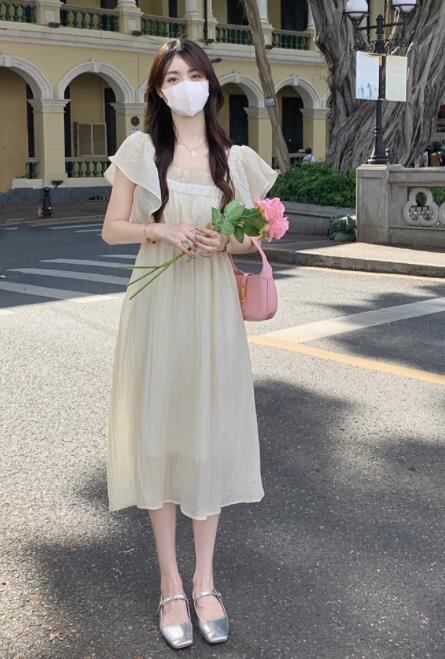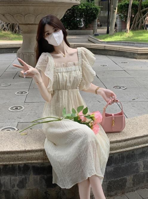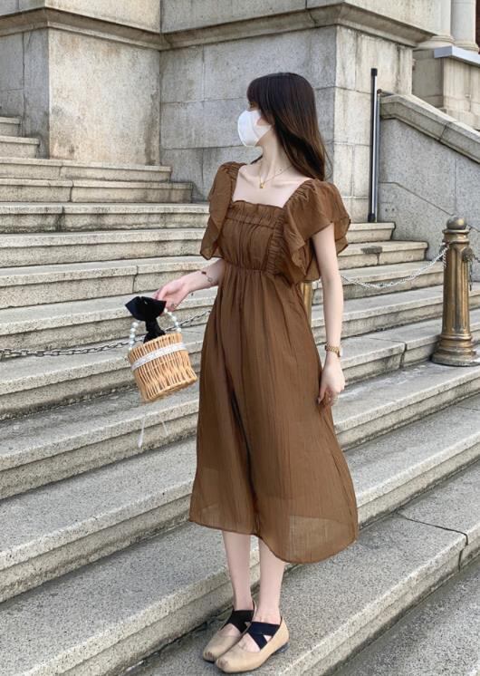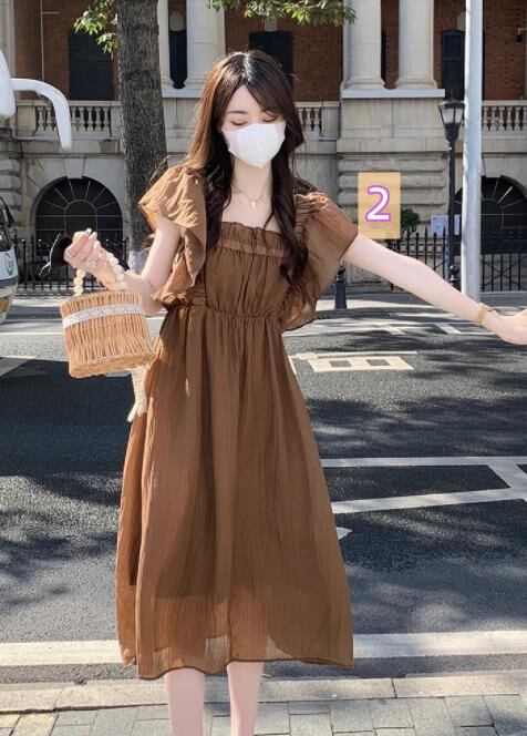 春夏新作 女 レディース ハイウエスト 無地 半袖 ロング ワンピース 台型スカート S-L GGHN59666