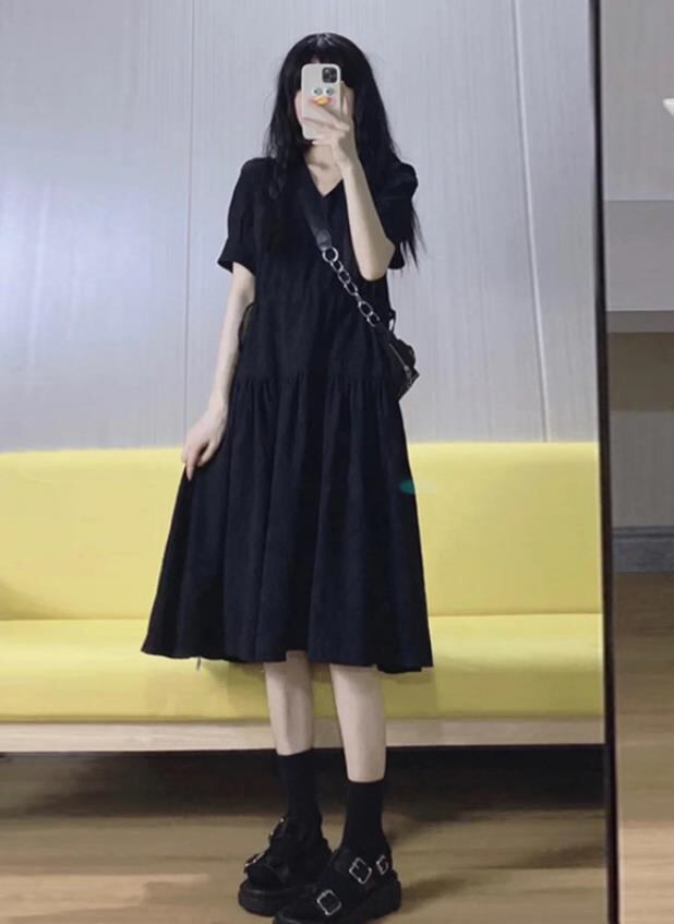春夏新作 女 レディース ハイウエスト 無地 半袖 ロング ワンピース 台型スカート S-L GGHN59666b