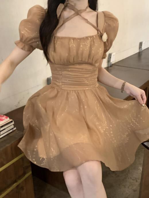 春夏新作 女 レディース ハイウエスト 半袖 ミニ ワンピース ドレス 台型スカート S/MEERMJNB3697019