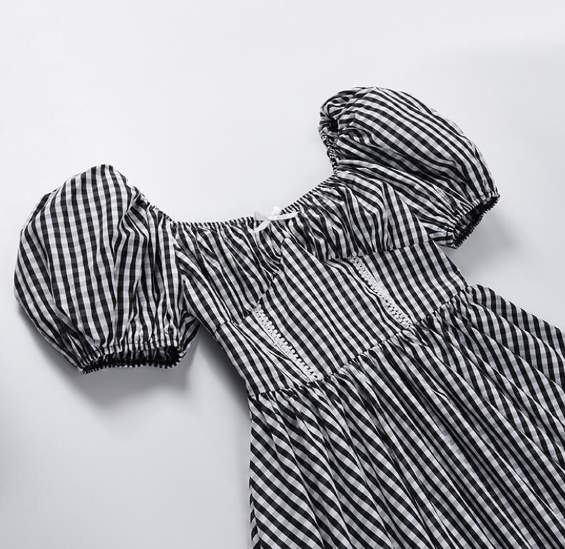 夏新作 女 レディース ハイウエスト 半袖 チェック柄 ミニ ワンピース ドレス 台型スカート 2色GYTRMZ369851041