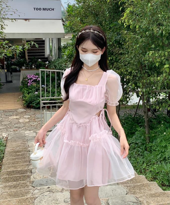 春夏新作 女 レディース ハイウエスト 半袖 ミニ ワンピース ドレス 台型スカート S-LTYNBDJ235871018