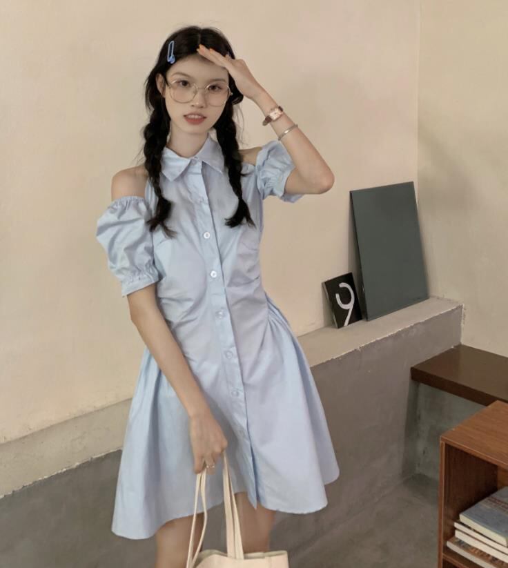 春夏新作 女 レディース ハイウエスト 半袖 ミニ ワンピース ドレス 台型スカート M/LTYNBDJ235871023
