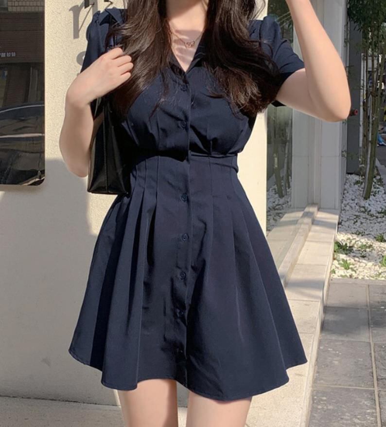 春夏新作 女 レディース ハイウエスト 半袖 無地 ミニ ワンピース ドレス 台型スカートTYNBDJ235871067