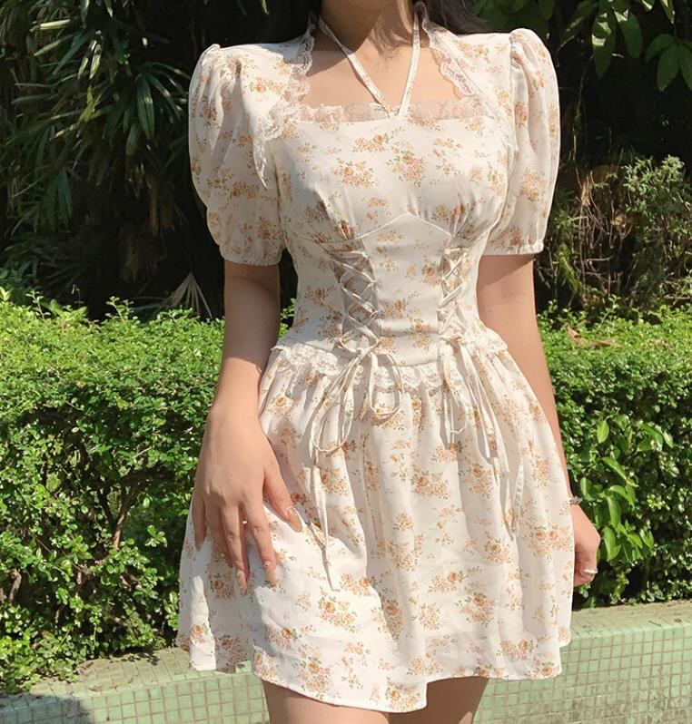 夏新作 女 レディース ハイウエスト 半袖 パフスリーブ ミニ ワンピース ドレス 台型スカート S-LMKUIHT25126133