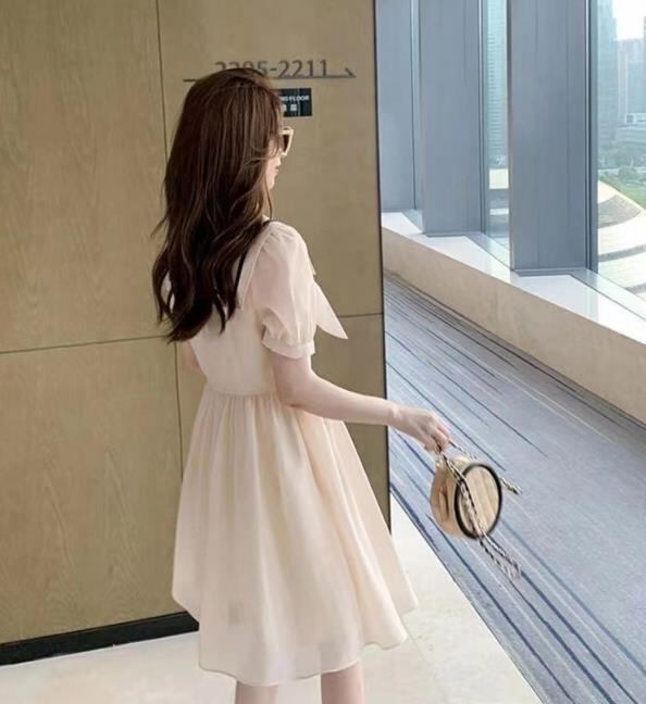 春夏新作 女 レディース ハイウエスト 半袖 ミニ ワンピース ドレス 台型スカート S/MEERMJNB3697019b