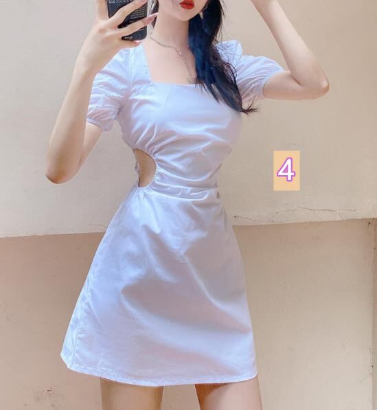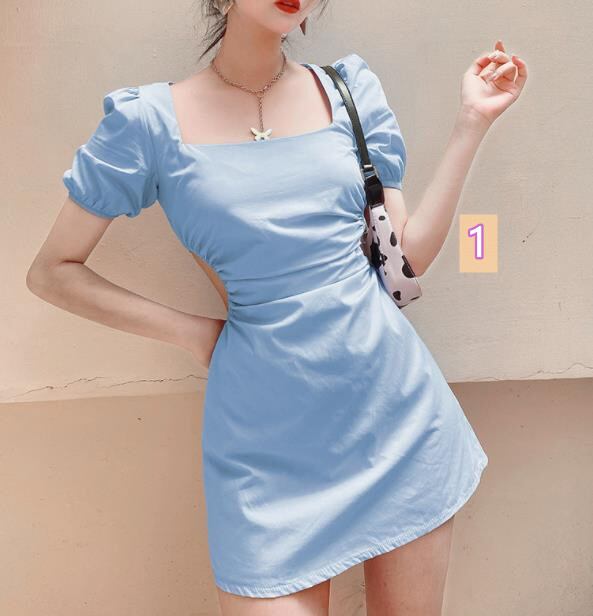 春夏新作 女 レディース ハイウエスト 半袖 無地 ミニ ワンピース ドレス 台型スカート 4色 S-XLYUIKJMP26398015