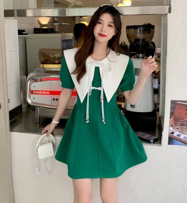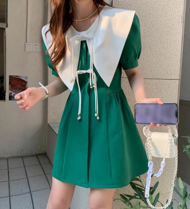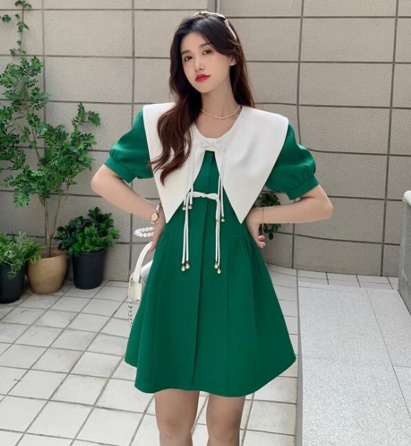 春夏新作 女 レディース ハイウエスト 半袖 パフスリーブ ミニ ワンピース ドレス 台型スカート S-LGYTRMZ369851005