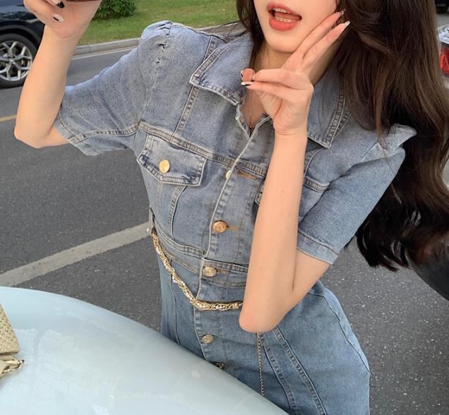 春夏新作 女 レディース ハイウエスト 半袖 デニム ミニ ワンピース ドレス タイトスカートGYTRMZ369851009