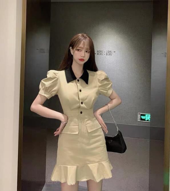 春夏新作 女 レディース ハイウエスト 半袖 パフスリーブ ミニ ワンピース ドレス マーメイドスカートGYTRMZ3698510112