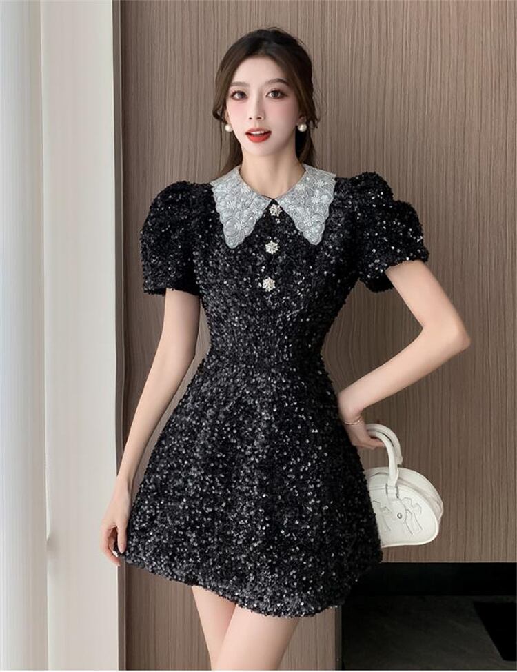 人形の襟 受け取って腰 ワンピース 半袖 洗練された ミニスカート レディース スリム