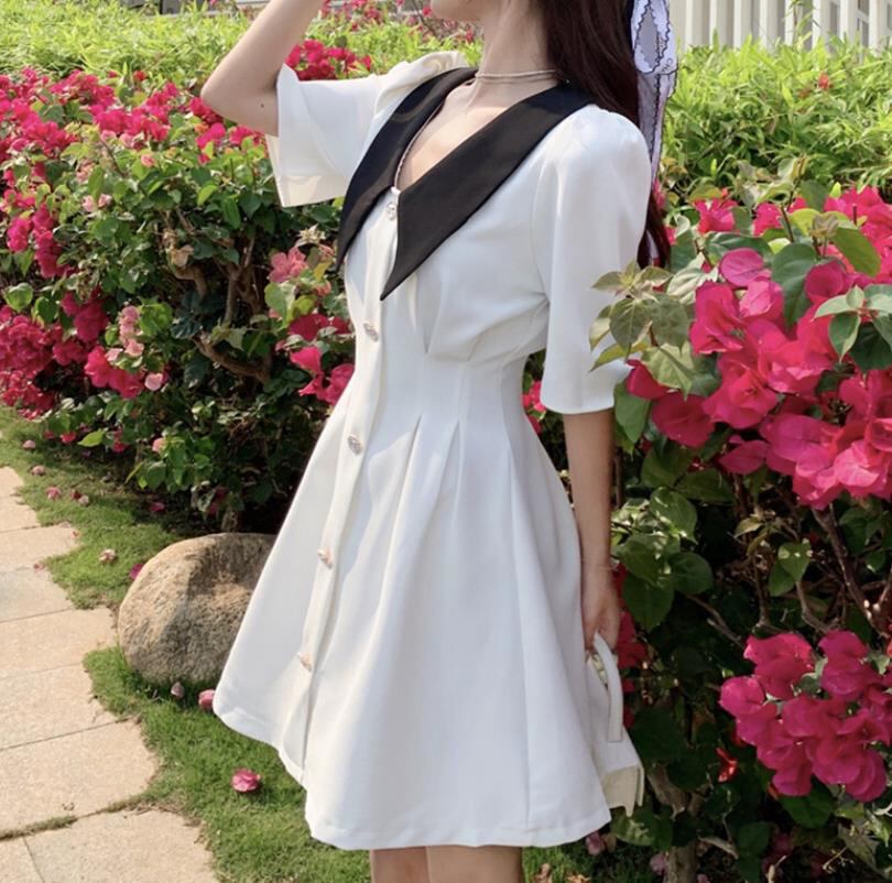 夏新作 女 レディース ハイウエスト 半袖 ミニ ワンピース ドレス 台型スカート 2色 S-LMKUIHT25126125