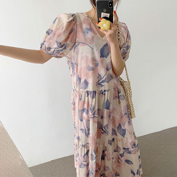 春夏新作 韓国風レディース服 Vネック半袖ワンピース ロング丈 通勤 花柄TREWPL36975113