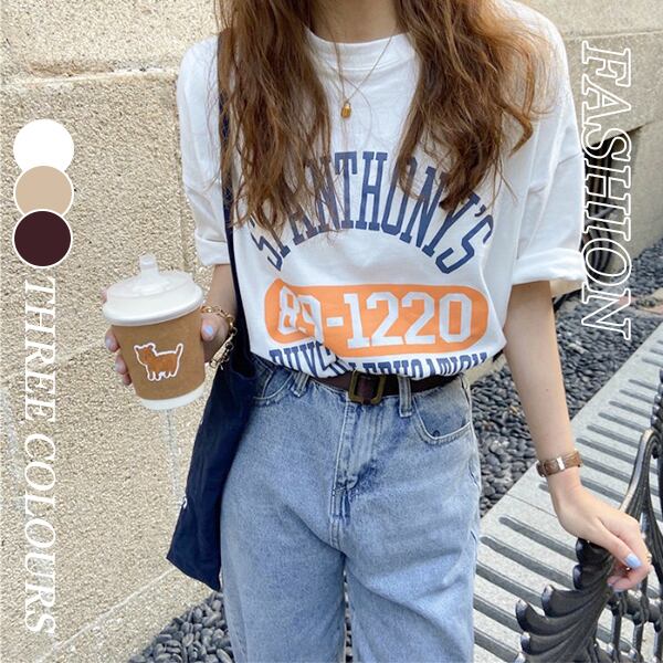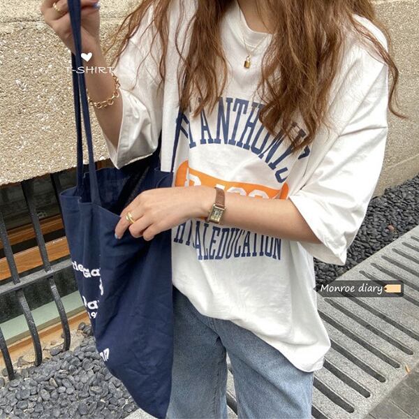春夏新作 韓国風レディーストップス 体型カバーTシャツ 半袖 英字 韓国ファッションTREWPL36975116