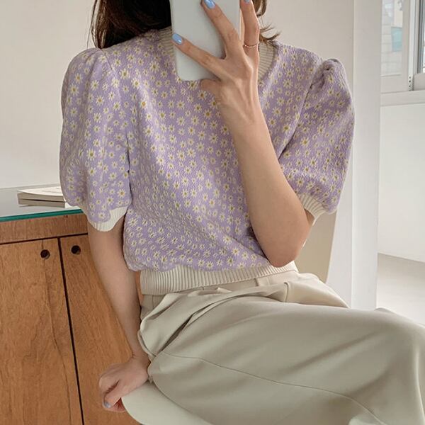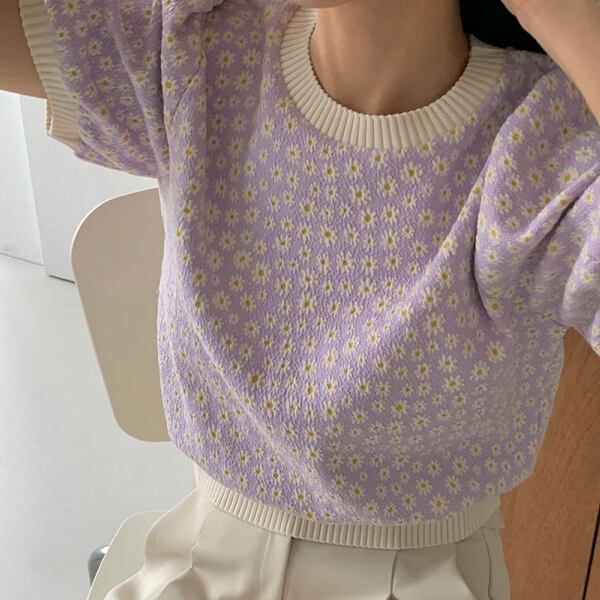 春夏新作 韓国風レディース服 半袖ニットセーター Tシャツ ミニフラワー 可愛いTREWPL36975118
