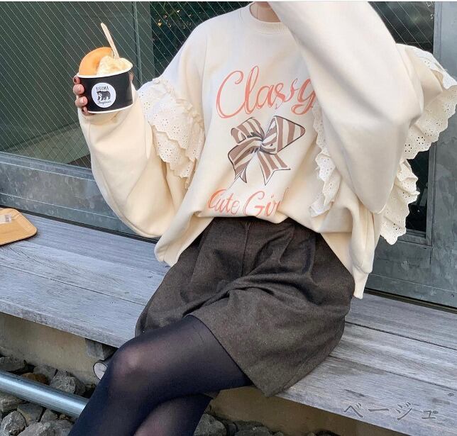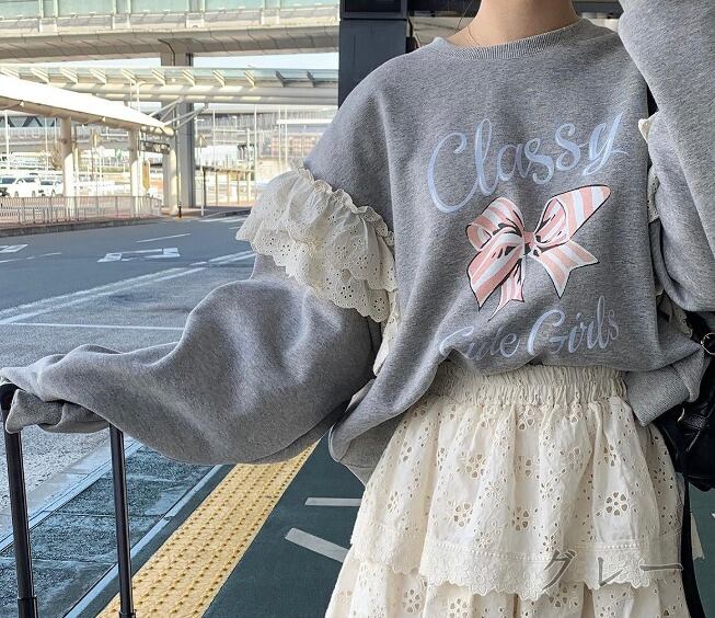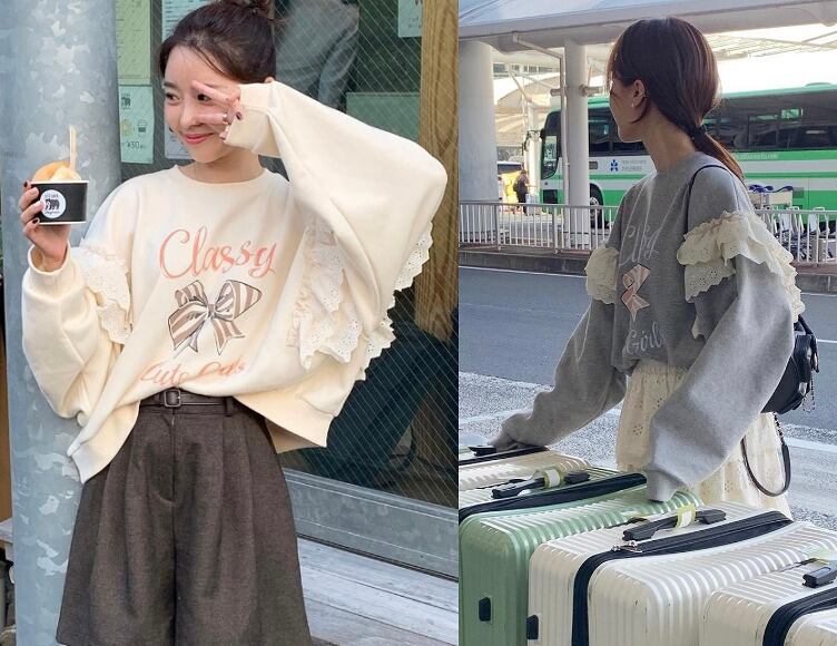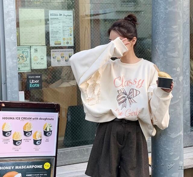 全2色 スウェット トレーナー フリル 切り替え 体型カバー 着痩せ カジュアル★# BBHLM6639