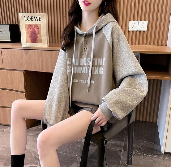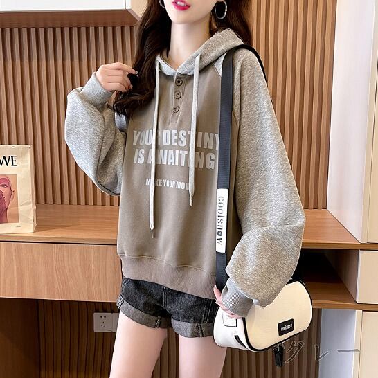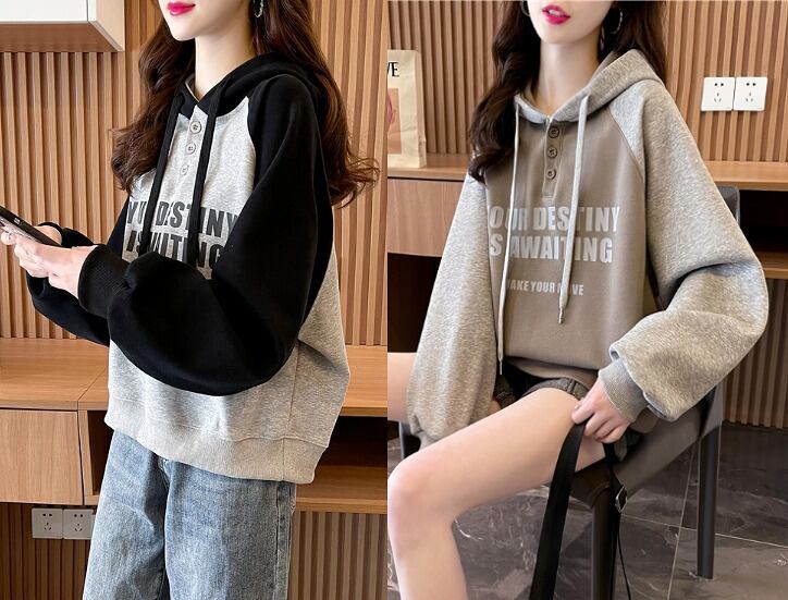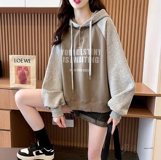 全2色 スウェット トレーナー 長袖 切り替え バイカラー 体型カバー 着痩せ 帽子付き 【大きいサイズあり】★# FDKO36955