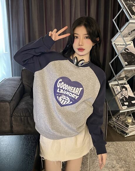 全3色 スウェット トレーナー 裏起毛 切り替え バイカラー 体型カバー 着痩せ シンプル カジュアル★# GGSQ370