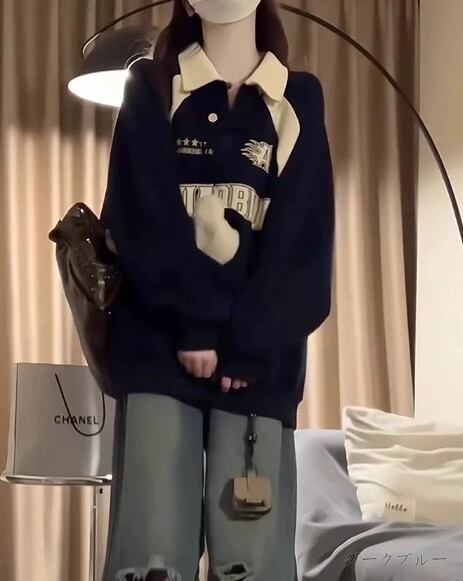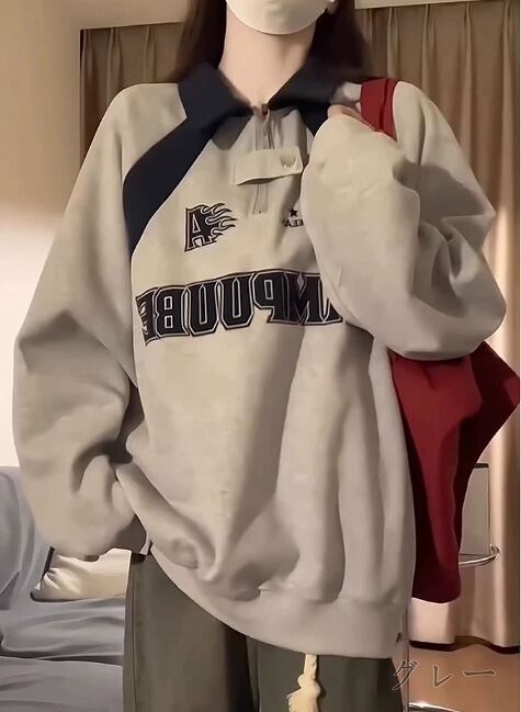 全2色 スウェット トレーナー 長袖 切り替え 体型カバー 着痩せ カジュアル★# QQSIK36955