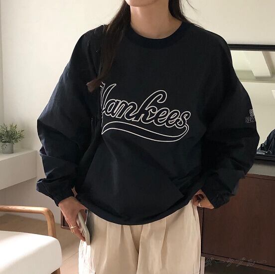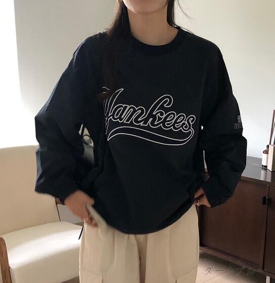 全2色 スウェット トレーナー 長袖 切り替え 体型カバー 着痩せ 薄手 シンプル★# YUJRE3622