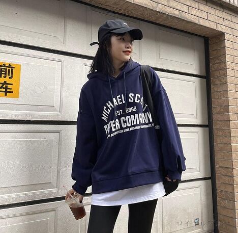 全5色 スウェット トレーナー 裏起毛 長袖 切り替え 体型カバー 着痩せ 帽子付き シンプル カジュアル★# JJKO36952