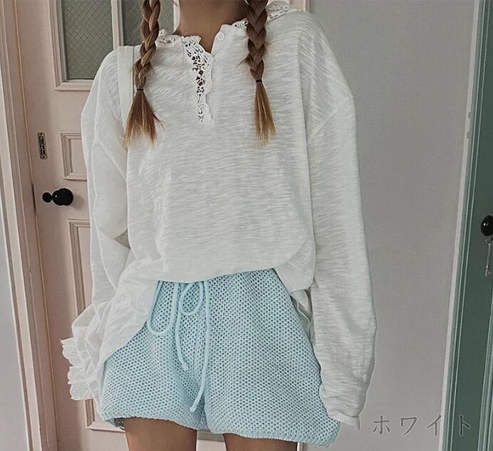 スウェット トレーナー 切り替え 体型カバー 着痩せ レース 帽子付き カジュアル パーカー カットソー フード付