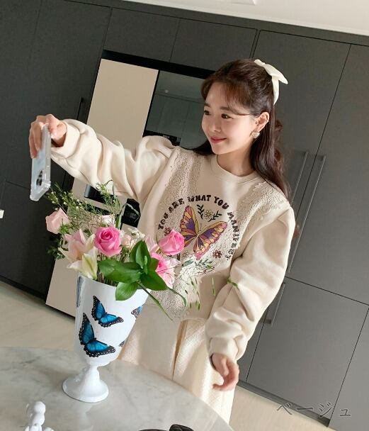 スウェット トレーナー プリント 切り替え バイカラー 体型カバー 着痩せ カジュアル★# DD236