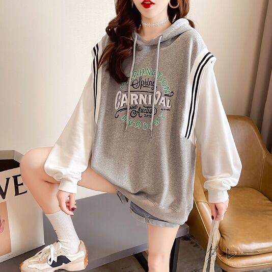 全3色 スウェット トレーナー フェイク 切り替え バイカラー 体型カバー 着痩せ 帽子付き 【大きいサイズあ★# NJVVR996