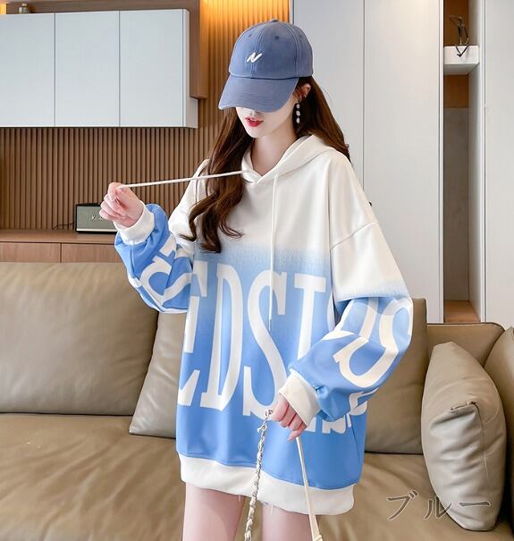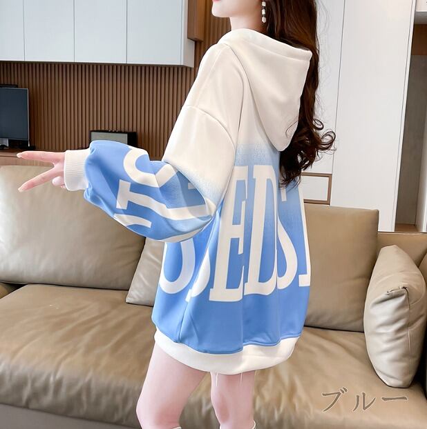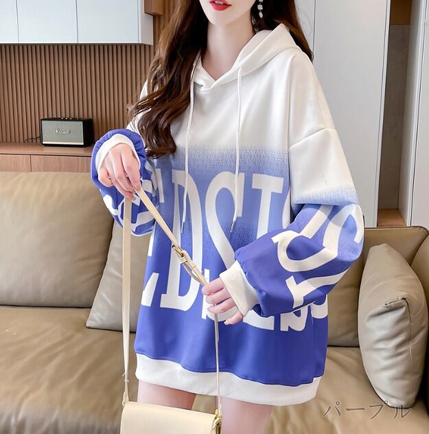 全3色 スウェット トレーナー 長袖 切り替え バイカラー 体型カバー 着痩せ 帽子付き シンプル カジュアル★# HHJK55287