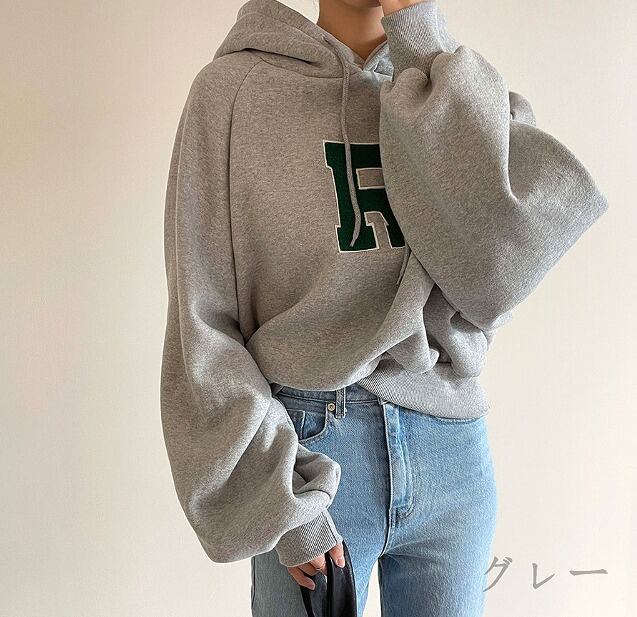 スウェット トレーナー 長袖 切り替え 体型カバー 着痩せ 帽子付き シンプル カジュアル パーカー カットソー フード付