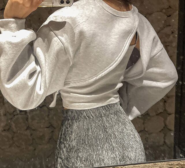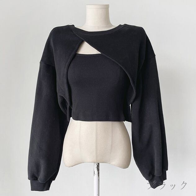 スウェット トレーナー 2点セット アシンメトリー 切り替え 体型カバー 着痩せ カジュアル パーカー カットソー 不規則