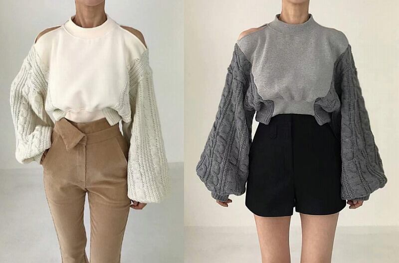 全2色 スウェット トレーナー 長袖 切り替え 体型カバー 着痩せ シンプル★# KKF2552