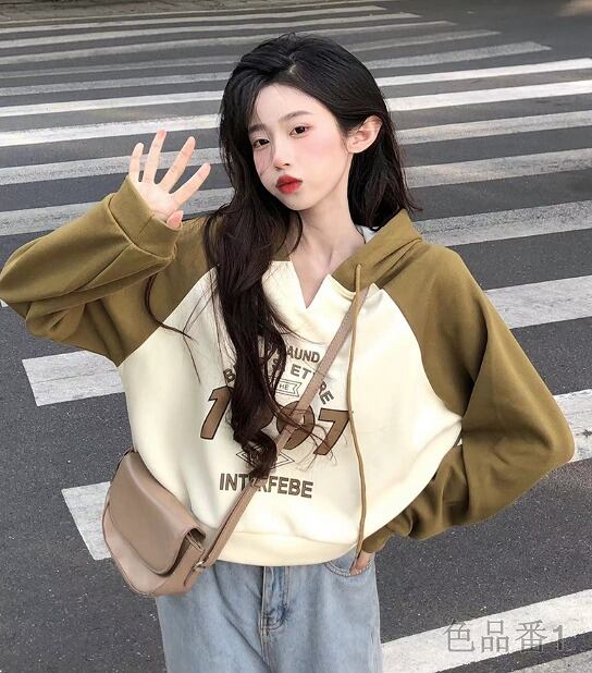 スウェット トレーナー 長袖 切り替え バイカラー 体型カバー 着痩せ シンプル★# JJD822360