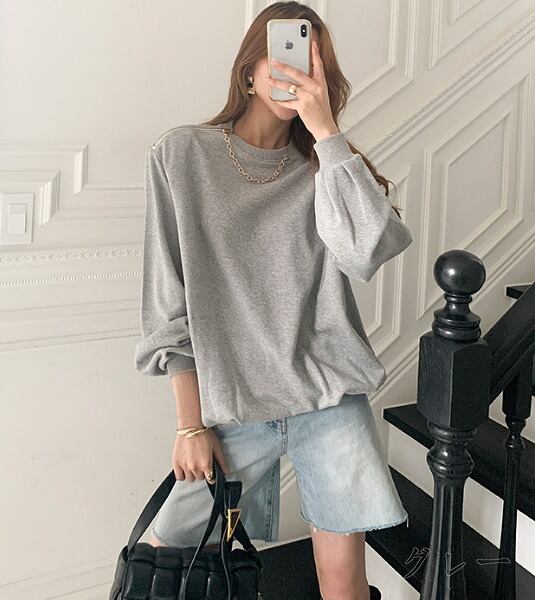 全3色 スウェット トレーナー 切り替え 体型カバー 着痩せ シンプル カジュアル★# YYR85988