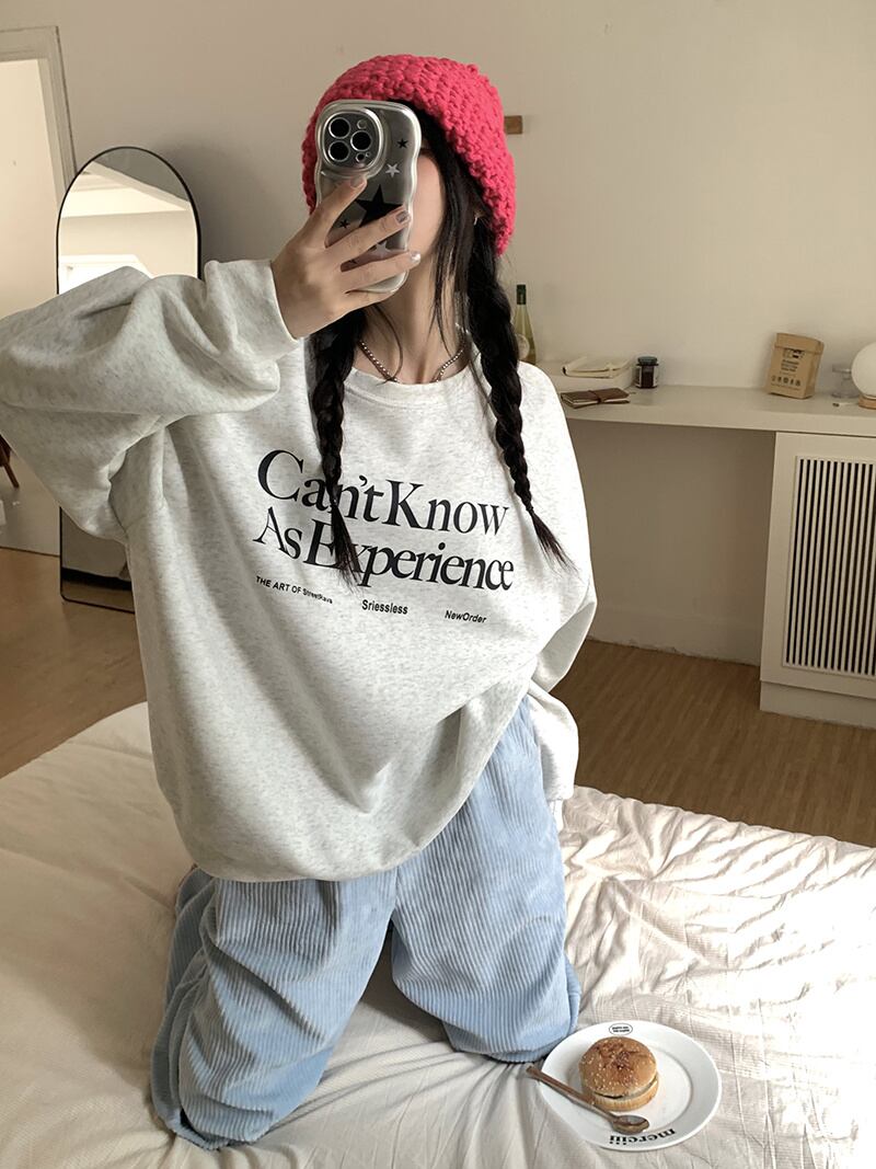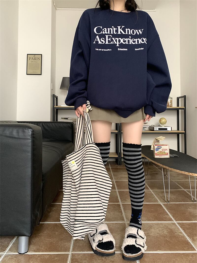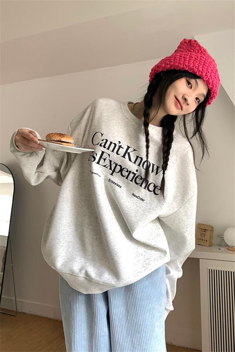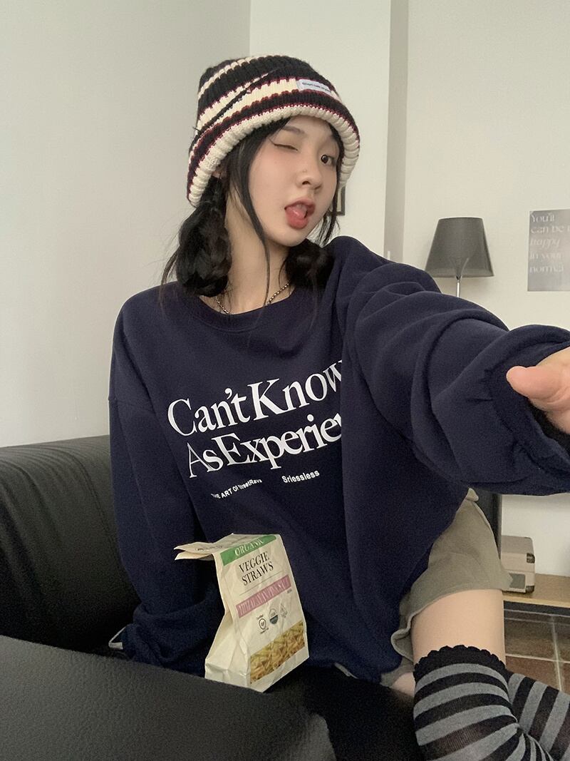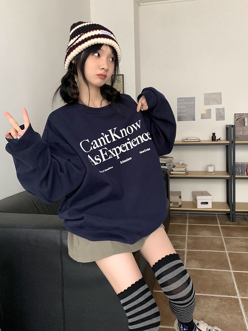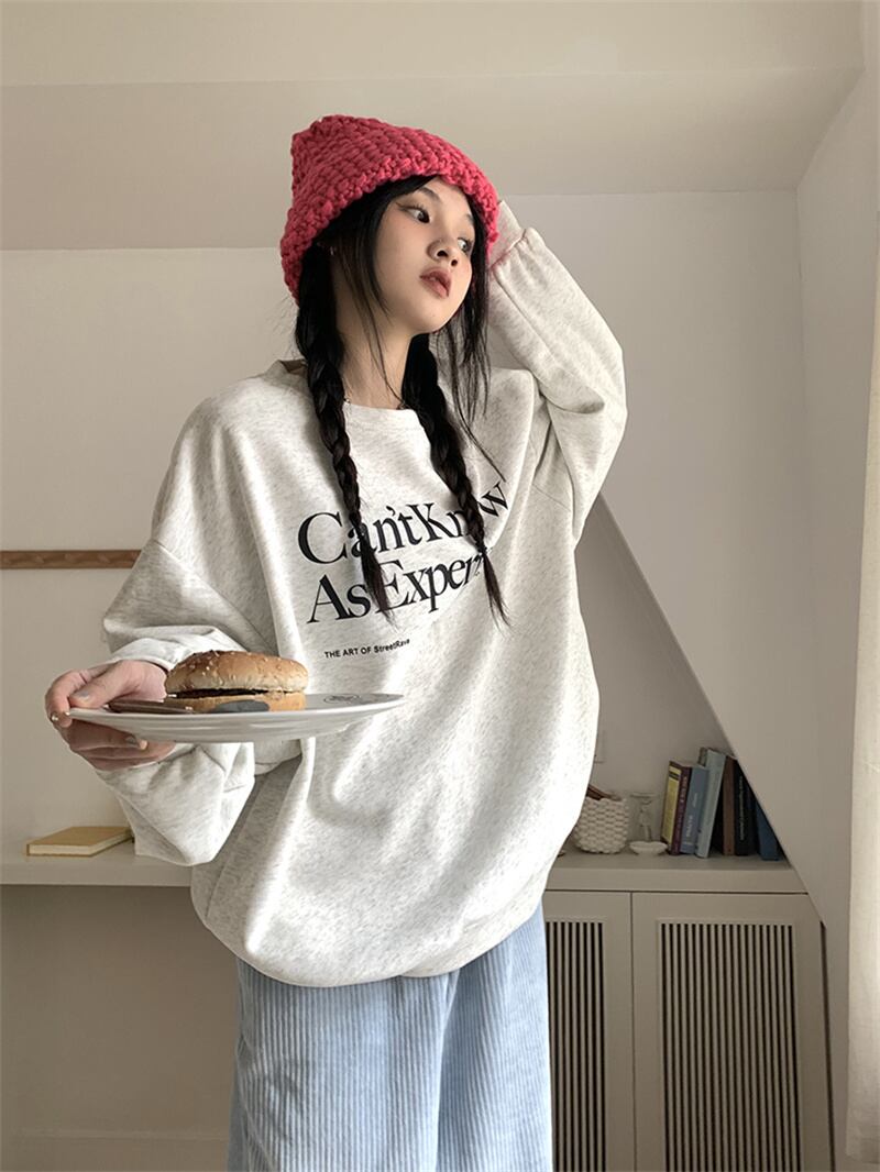 秋冬 新作 レトロ ゆったり 長袖 プリント 配色 アルファベット プルオーバー 裏起毛 トレーナー★# GGFR23975