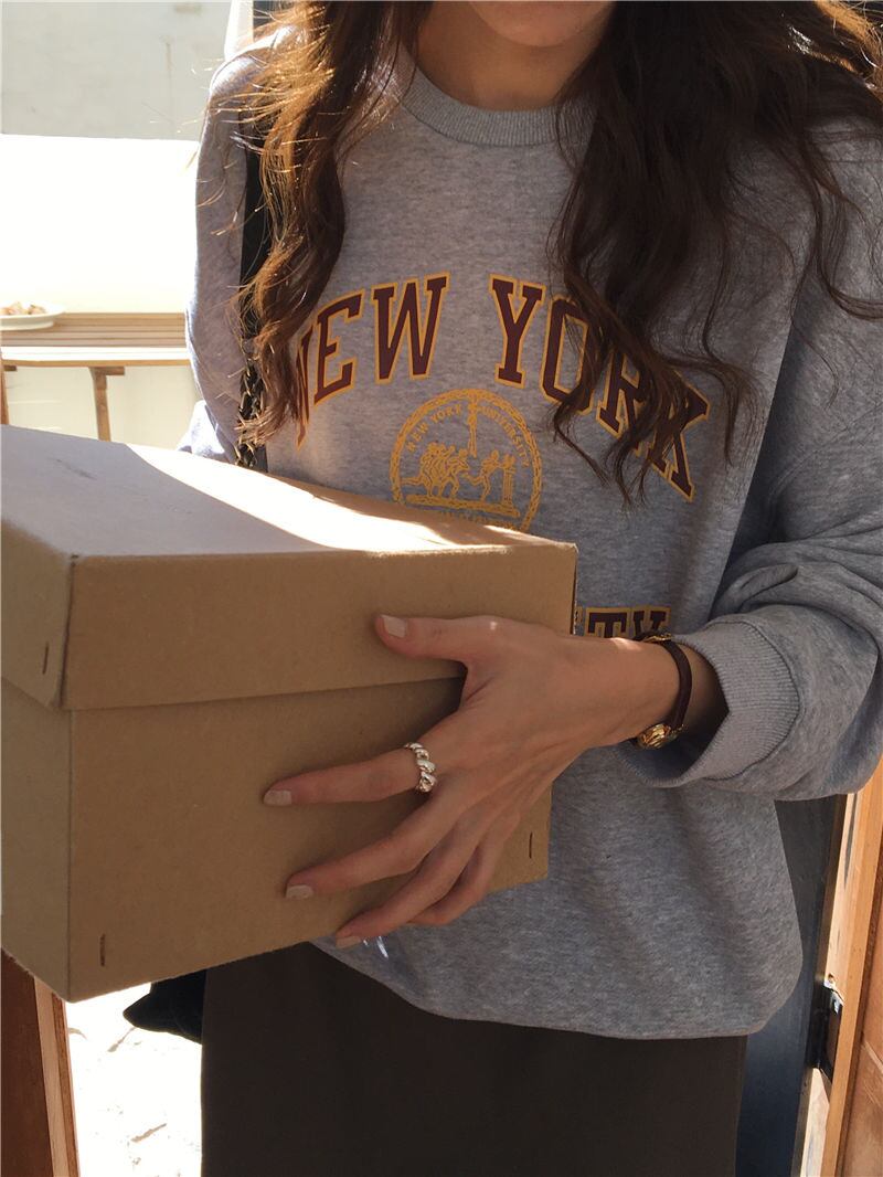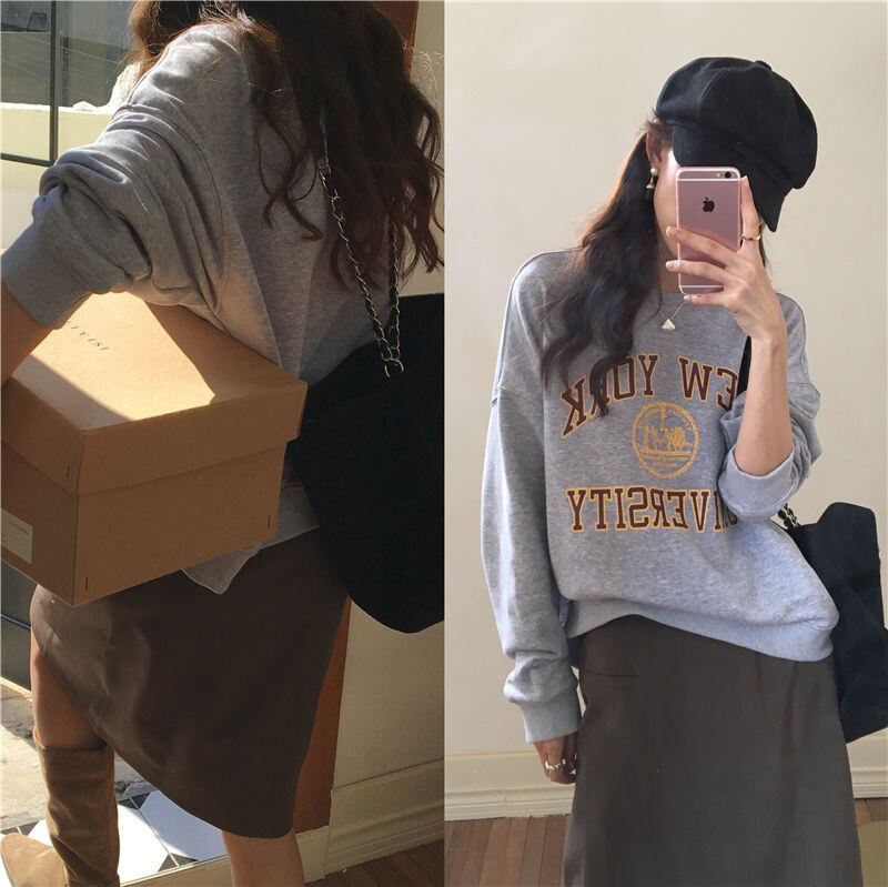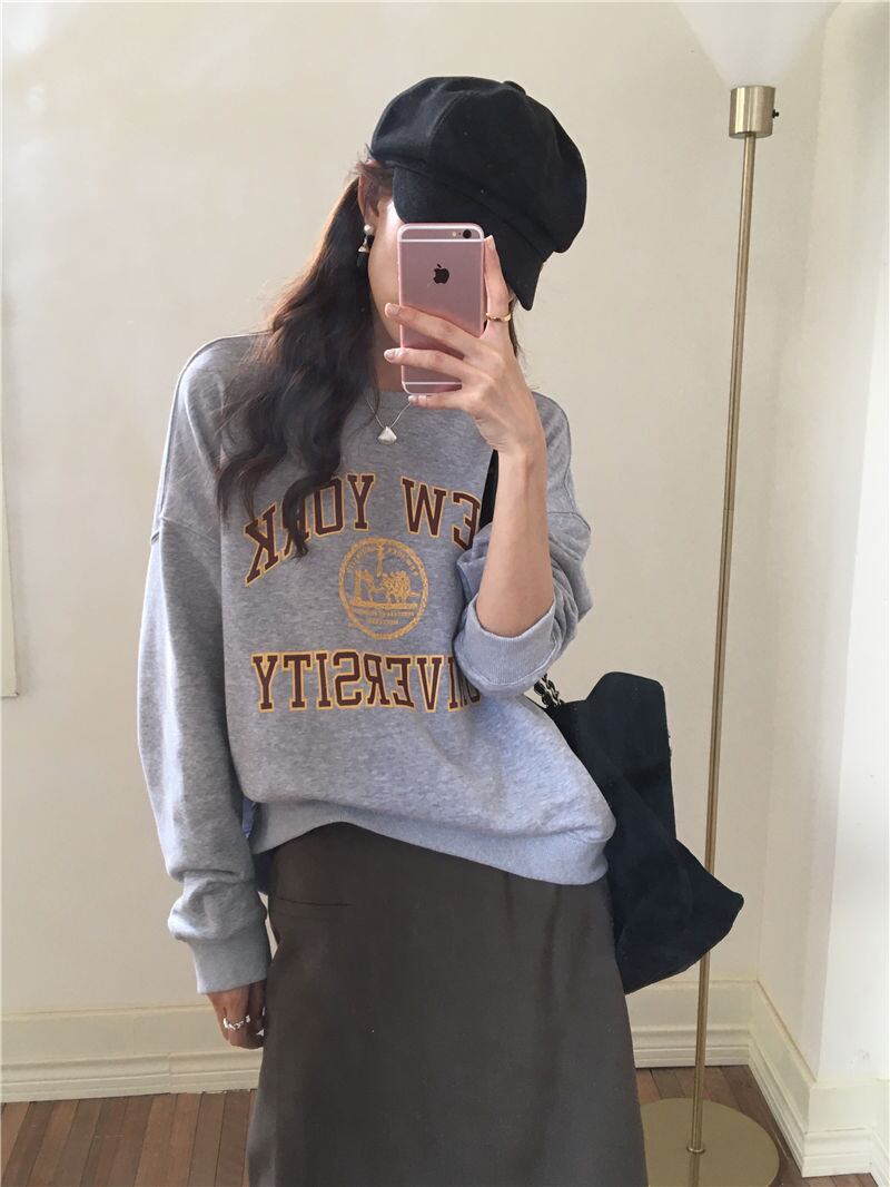 秋冬 新作 レトロ 長袖 プリント 配色 アルファベット プルオーバー 切り替え トレーナー★# GGFR23995