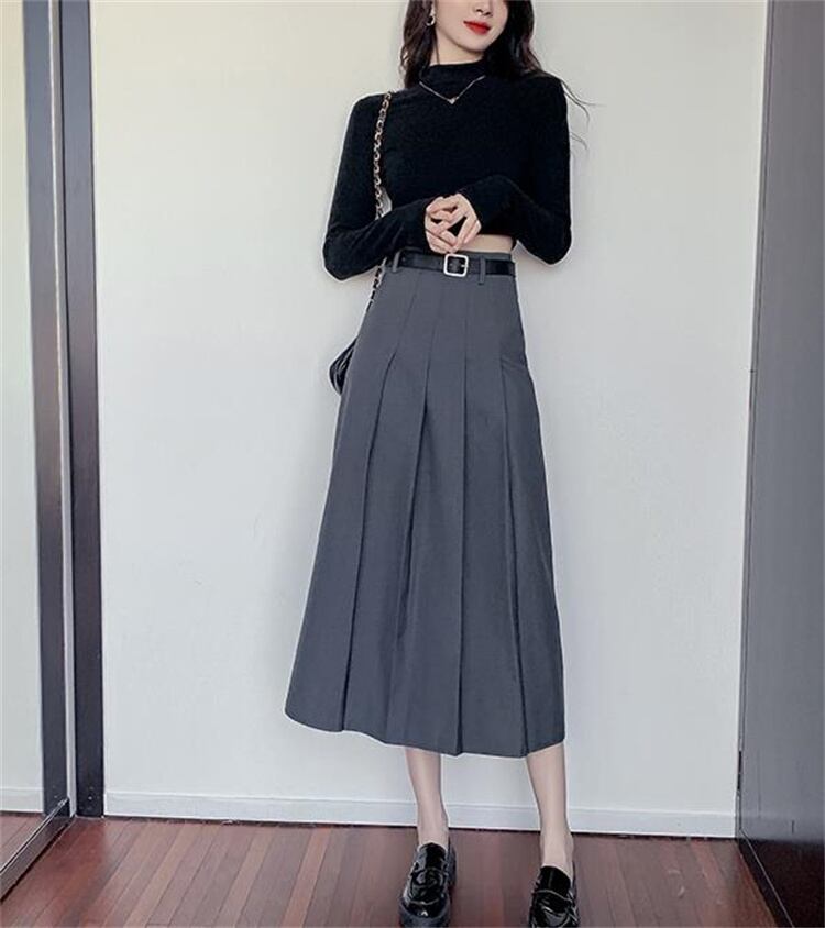 激安セール 中長セクション プリーツスカート ハイウエスト ロングスカート